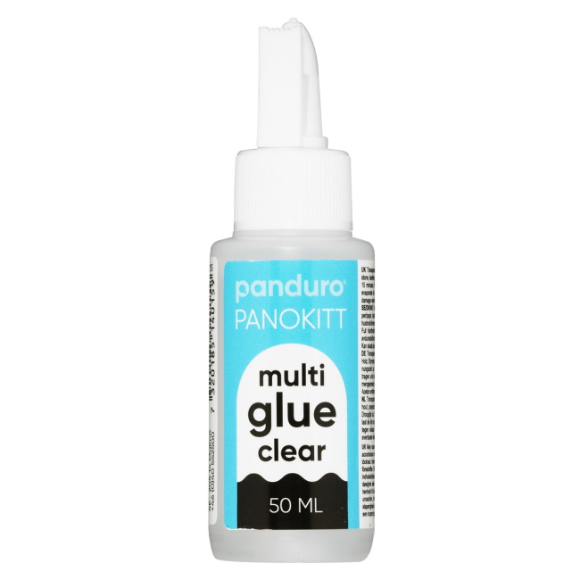 Panokitt-liima Multi Clear, sisäkäyttöön. Nopeasti kuivuva liima paperille, pahville, puulle, styrolitille, kivelle, nahalle, lasille jne. Läpinäkyvä, vedenpitävä ja liuotinpohjainen. pH-arvo 7.