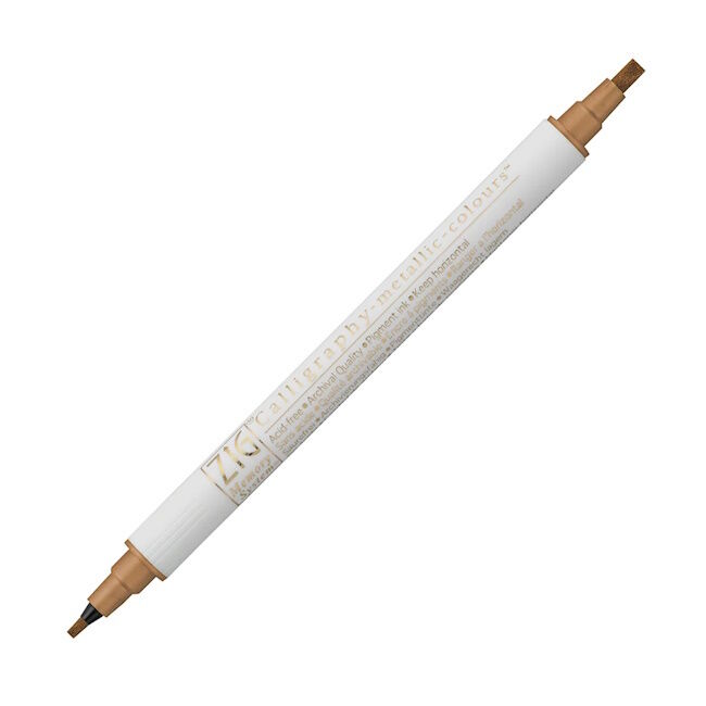 ZIG Memory System Kalligrafia Metallinen Marker 2mm kärjellä ja 3,5mm kärjellä. Erityisen tehokas tummilla papereilla. Nämä tussit ovat hapotonta, vedenpitävää, pigmenttimustetta, joka on valokuvaturvallista ja arkistointilaatua.